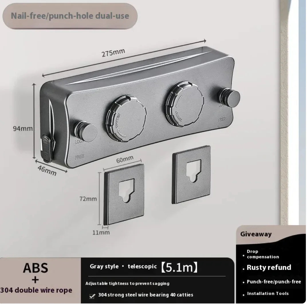 This punch-free retractable clothesline is designed for convenient indoor drying without damaging walls. Made with durable steel wire, it extends easily when needed and retracts smoothly when not in use, keeping your space tidy. Ideal for small apartments, laundry rooms, or bathrooms, it blends seamlessly with your décor while offering strong support for daily laundry.